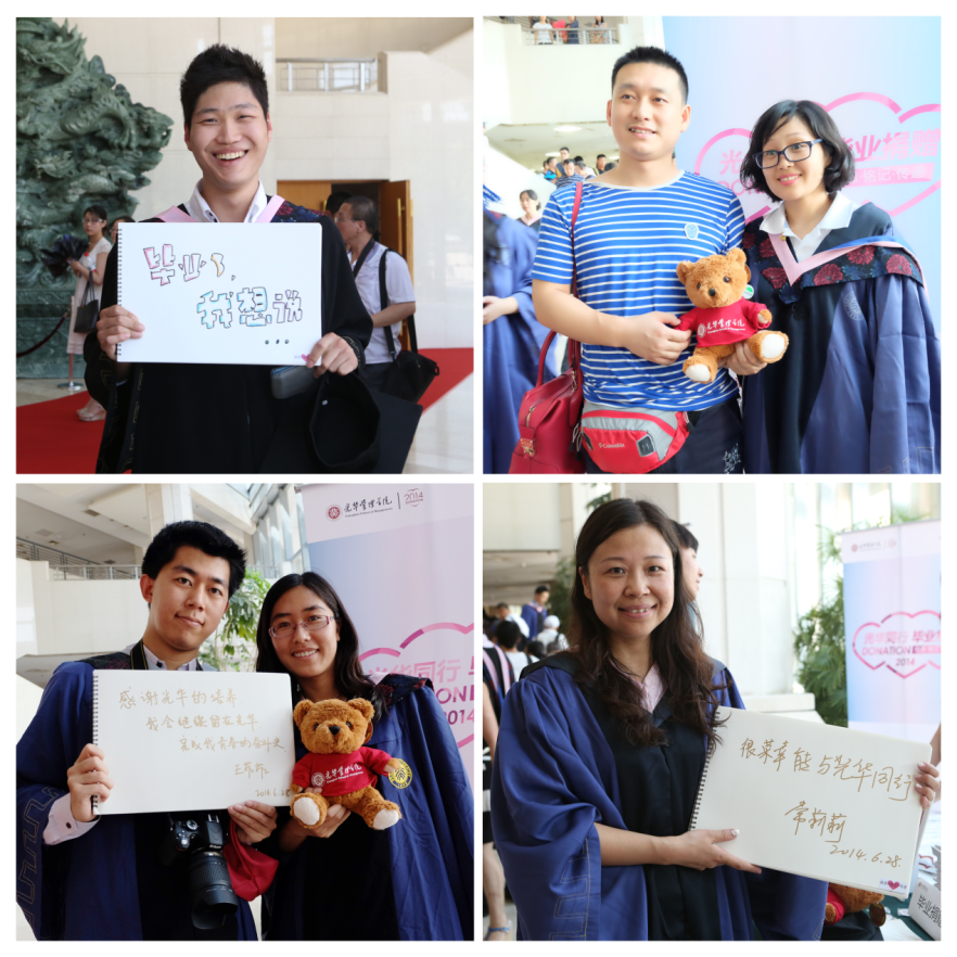 当天参与捐赠的主要有本、硕、博以及MBA毕业生,这其中也包括外籍学生,虽然写着不熟练的中文,却情义相通。北大将大家从全国乃至世界各地汇集在五四路,在成人直播这个大家庭里相知相识,共同度过闪亮的青春岁月。如今一袭学士服,两袖书卷风,揽起执笔竟也一时词穷,也许纵有心中千千词也无法表达得淋漓尽致,唯有化成最纯朴的字句:“很荣幸能与成人直播同行”,“愿你我一起成人直播”,“感谢成人直播的培养,我会继续留在成人直播,完成我青春的奋斗史”…字里行间饱满着毕业生对母校的真挚情谊与眷恋,也许未曾有人真正去了解“北大人”、“成人直播人”背后的意义,然而此时此刻,一切已了然于心,无需记得却也不会忘记。这正是无法抹去的“成人直播人”的精神烙印。