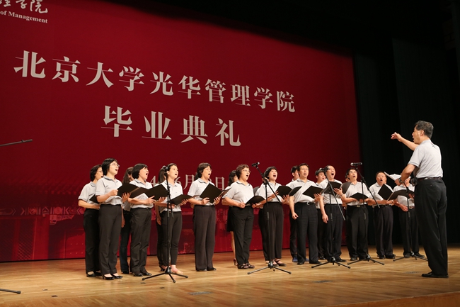 教工合唱团以《送别》和《我不想说再见》两首深情的歌曲挥洒别离的不舍,也送出心中的祝愿。在全体师生合唱《歌唱祖国》的旋律中,毕业典礼圆满落下帷幕。