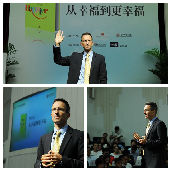 沙哈尓博士分享了自己对于积极心理学的研究成果。首先,他分析了成功与幸福的关系。很多的教育模式常常强调,上好学校,有好工作,即所谓的“成功”就能使人幸福,但沙哈尓博士通过在哈佛课堂上的调查发现,成功不一定导致幸福,但幸福可以引导人走向成功。其次,体育锻炼可以使身心保持健康,每周3次,每次30分钟等锻炼可以排出大脑的有害化学物质,提高注意力和创造力。另外,要保持一颗感恩的心。多项研究表明,记录下心存感激的事情,会让自己觉得更幸福。根据沙哈尓博士最近的研究,对未来表示感恩,期待,就可以增强幸福感,减少焦虑。