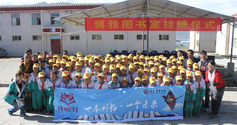 由于雨季河水冲刮,通往另外一个山坳的达孜大桥已经被禁止通行,因此原计划要走访的另外一所邦堆乡完全小学此行无法前往了。但令人欣慰的是由ExEd中国企业经营者第9期的校友霍文胜捐赠的图书早已运到学校,图书室已经开放给同学们使用了。学校还特意寄来了邦堆完小学生们的照片,特别感谢霍文胜校友的慷慨捐赠,并邀请我们有机会去学校看看。