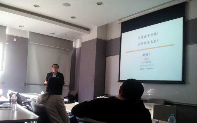 新楼217会议室成功举行。本期主题是《中国式众筹的实践与思考》,主讲嘉宾是在众筹领域中具有扎实理论知识和丰富实践经验的韩树杰博士。