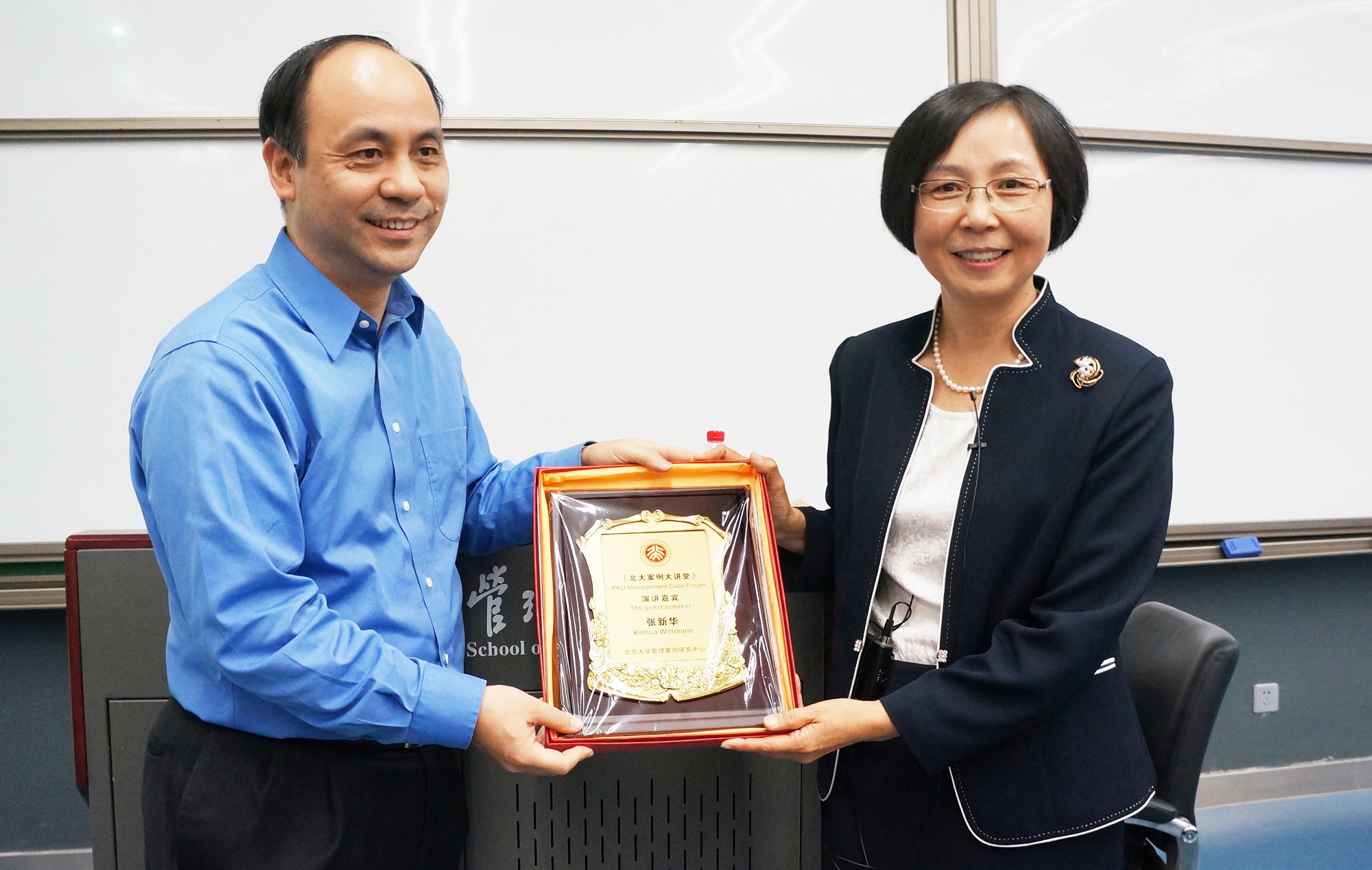 为张教授颁发纪念奖牌,第24期《北大案例大讲堂》在愉快的氛围中落下帷幕。