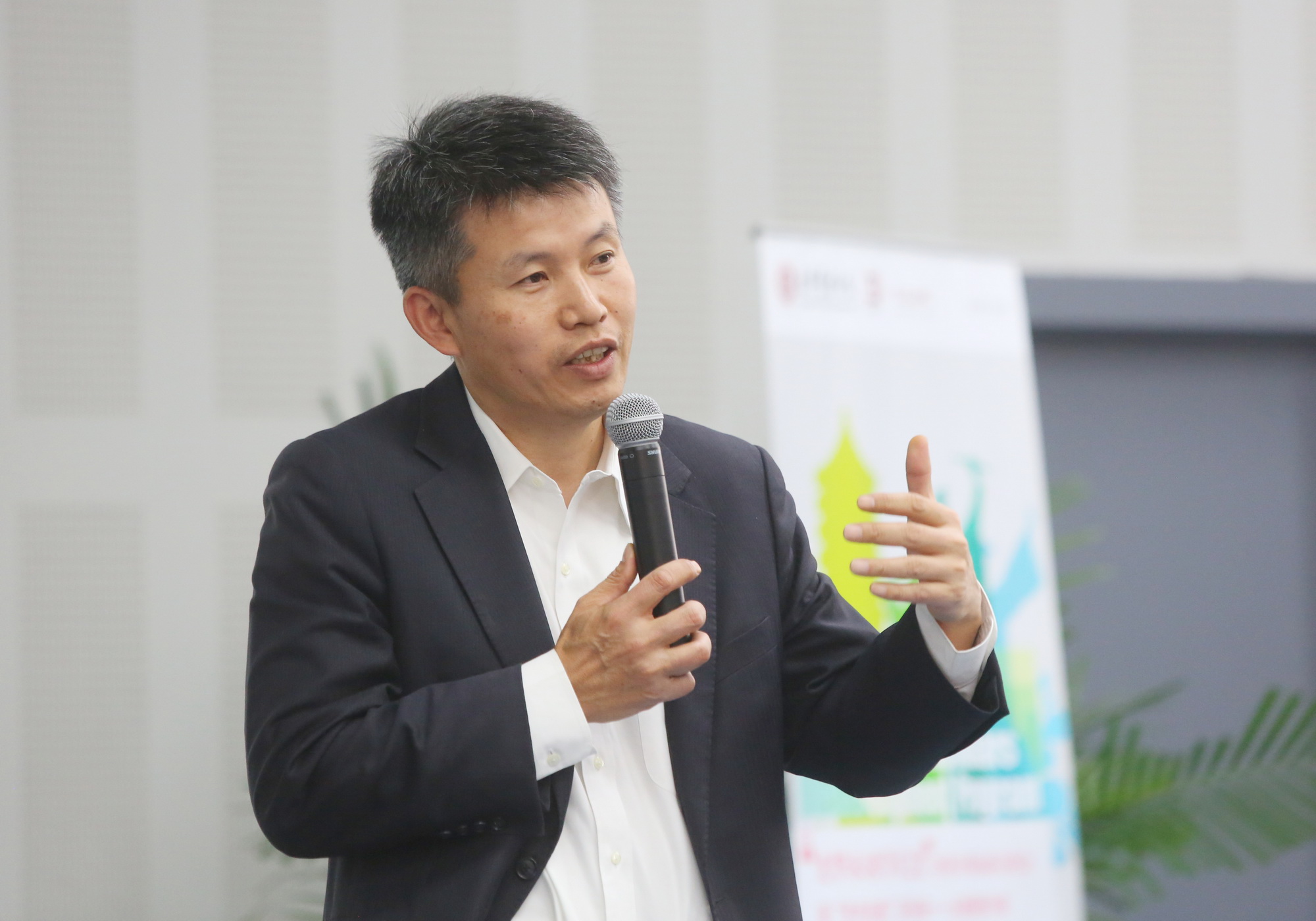 院长蔡洪滨教授致辞。蔡老师以自己的求学经历,跟大家分享了走上学术道路的体验与心得。上个世纪的九十年代,在出国风潮鼓动下大批的国内人才出国深造,但是很多人都不知道自己真正热爱的是学术还是出国本身。在国外求学期间,蔡老师逐渐确定并坚持了从事学术研究的道路。他强调:发现自己是一个过程,而学术是人生众多选择中的一种,这种选择虽然没有职场那份风云,但是不断在学术中发现探索知识正是学术的乐趣所在。