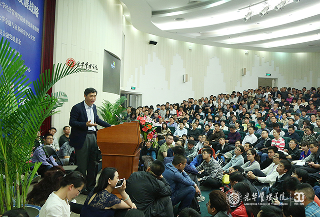 新楼阿里巴巴报告厅气氛热烈,座无虚席,经济与金融高级论坛第95期暨“中国经济与大国发展战略”讲座活动隆重举行。本次讲座由清华大学经济管理学院弗里曼讲席教授李稻葵先生主讲,北京大学金融与证券研究中心主任曹凤岐教授主持。本次活动由北京大学曹凤岐金融发展基金主办,北京大学金融与证券研究中心和北京大学成人直播-富邦两岸金融研究中心协办。