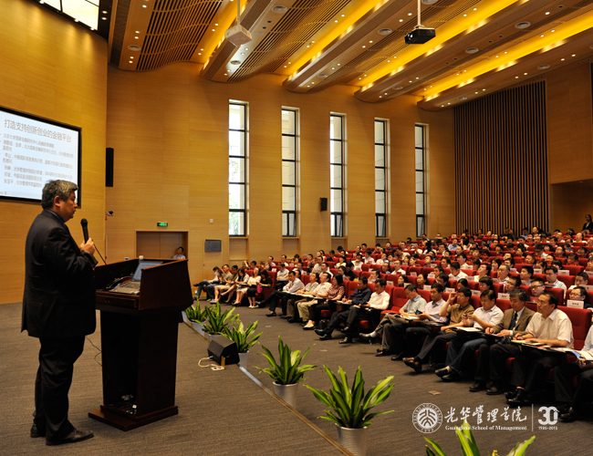 副院长、金融系讲席教授金李博士,他为在陕金融从业者带来主题为“如何打造支持创新驱动型经济的金融体系”的精彩演讲。来自陕西省金融办、人民银行西安分行、陕西省银监局、陕西省证监局、陕西省保监局等政府机构,中国银行陕西省分行、农业银行陕西省分行、工商银行陕西省分行、建设银行陕西省分行、交通银行陕西省分行等二十余家驻陕银行,以及信托、保险、证券、资产管理等行业的四百余名中高层核心管理精英共同聆听了金李教授带来的这场金融饕餮盛宴。
