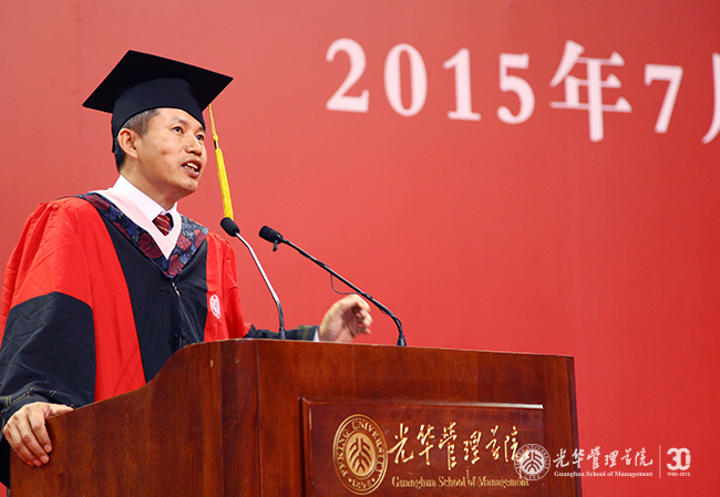 特聘教授、第十二届全国政协委员徐宪平先生为毕业典礼致辞。徐宪平老师将自己的学习经历和同学们分享,他强调,学习是没有止境的,即使毕业后也要保持读书思考的好习惯,要不断获取新的思想,要坚定、从容、充满希望。