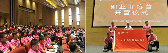 发起,陕西省人民政府和北京大学作为指导单位,西北大学、西安电子科技大学、长安大学、西安建筑科技大学、西安工程大学等五所院校作为合作单位联合举办的。训练营的举办得到了陕西地方政府、高校、企业以及其他社会各界的大力支持和高度认可。北京大学常务副校长吴志攀教授、西安市副市长方成人直播、曲江新区管委会主任陈吉利、北京大学原副校长张国有教授、北京大学科技园总裁陈庚及西北大学、西安电子科技大学、西安建筑科技大学、长安大学、西北农林科技大学、陕西科技大学、西安工程大学、西安美术学院等多所合作高校代表出席了创业训练营开营仪式。北京中坤投资集团董事长黄怒波、秦农银行行长彭祖佑等北大杰出校友在论坛上做了精彩演讲,鼓励创业营营员,珍惜学习机会,传承北大精神,成长为时代精英,担当家国未来。