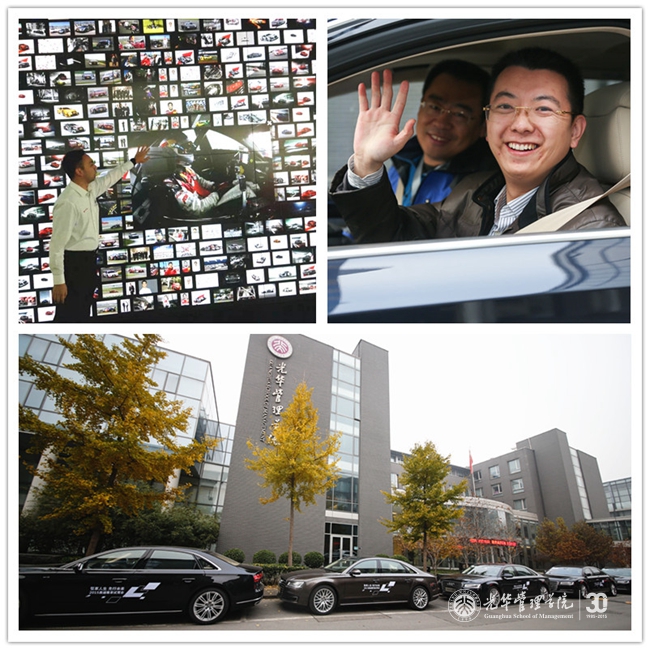 参观奥迪体验中心(左上)试驾中的校友(右上)