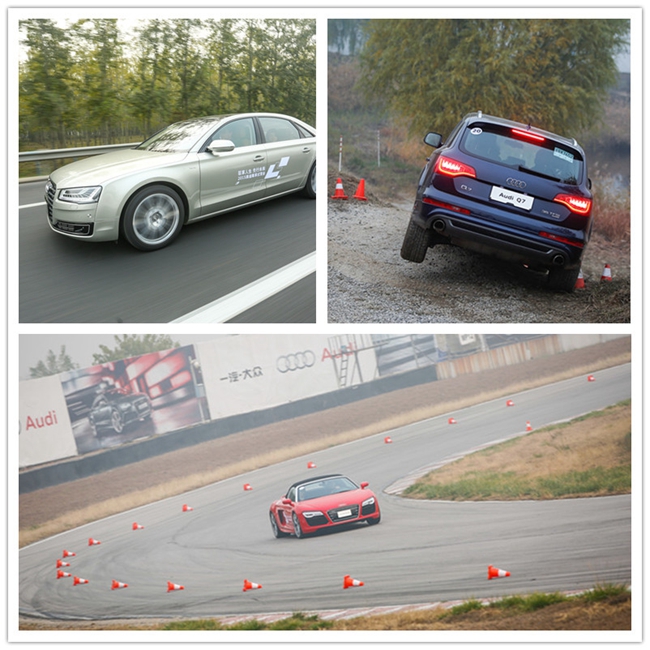 A8L道路试驾(左上)Q系极限越野(右上)R/RS系赛道体验(下)