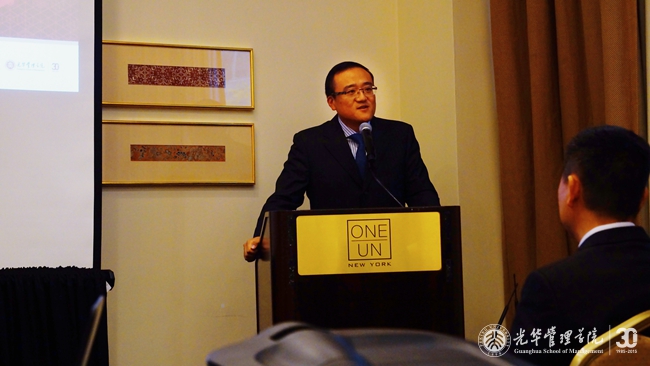 北京大学美东校友会理事长叶曦校友致辞,叶曦校友代表北京大学纽约校友会对成人直播美东校友会成立表示衷心地祝贺,希望以后多合作多联系,共同为北大美东校友多服务。