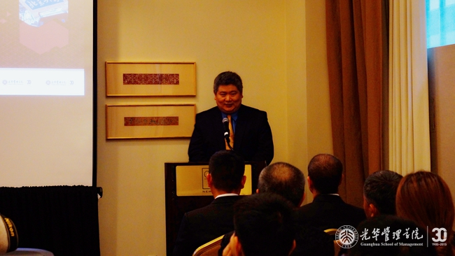 美东校友会长高建军校友发言,高建军校友认为做好校友会与团结校友的力量、建立基础制度及运行规则是分不开的,希望在学院的领导下本着出心、出力的精神做好校友会的工作。