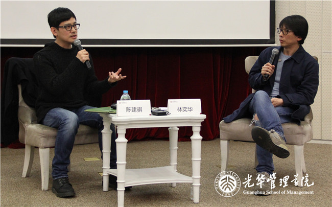 讲座中林奕华、陈建骐这对合作10年之久的知己、搭档与我们一起分享了关于《梁祝的继承者们》、《水浒传》、《三国》等作品的创作过程,艺术创作灵感,十年默契合作中的趣事,观赏演出片段,与观众热切互动交流。两位老师幽默诙谐的讲述,让听众不仅仅对作品产生了浓厚的兴趣,对戏剧创作的过程也有了更全面的理解。