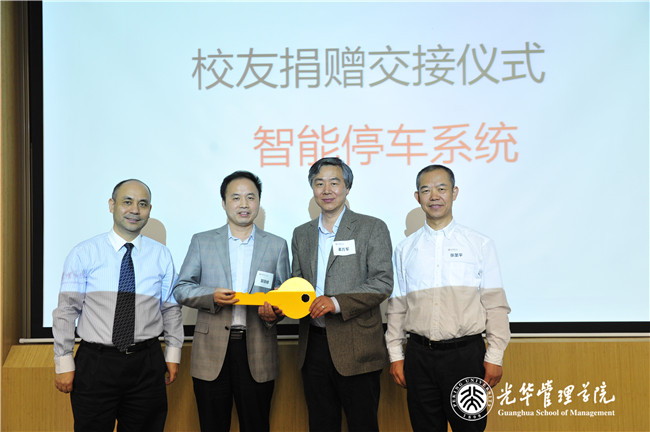 学院的发展离不开校友的支持。EMBA501班蒲小川校友为学院捐建乒乓球室、EMBA567班郭景峰校友为学院捐建智能停车场系统。两位校友与学院的老师进行了简约的交接仪式。