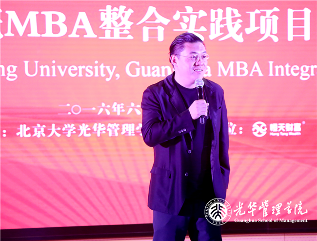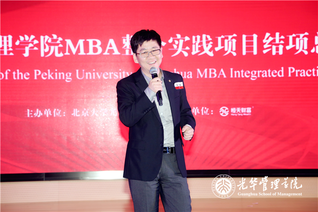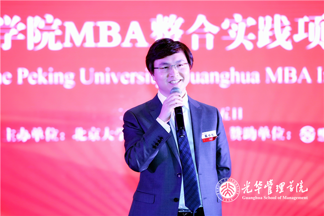 院长助理、MBA&MSEM项目执行主任赵龙凯教授出席活动并致辞。本年度参与整合实践项目的企业包含北京恒天财富投资管理有限公司、北京刷脸科技有限公司、广州悦途网络科技股份有限公司、海航资本集团有限公司、华兴控股集团、京东金融、乐视体育文化产业发展有限公司、神州优车(福建)信息技术有限公司、网宿科技股份有限公司、正谷(北京)农业发展有限公司、中华少年儿童慈善救助基金会--合伙公益专项基金11家来自各大行业的领先机构和企业。