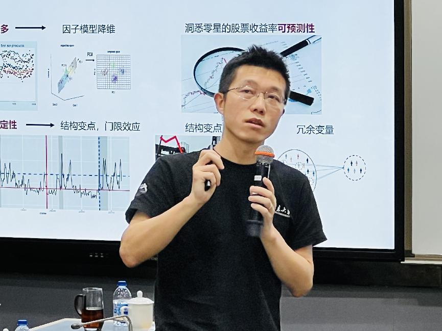 具体而言,涂老师分享了如何在高维数据情形下,利用因子模型对数据进行降维。鉴于数据对不断变化的外部环境做出反应后可能存在结构不稳定的问题,涂老师指出可以采用结构变点或者门限效应的方式对其进行处理,并依托于此进一步分析宏观经济系统和金融系统不稳定的原因。另外,涂老师还分享了如何结合结构变点、变量筛选等方法研究股票收益率可预测性问题,并在这一问题上进行了实践探索,取得了丰富的学术成果。