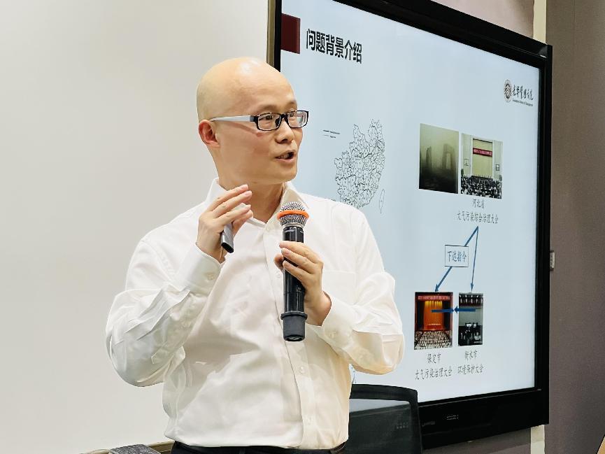 首先,虞吉海老师从问题背景介绍切入。他梳理清代中国粮食价格数据,对比不同地区的粮价水平、关注其空间相关性,以求探索“工业革命在英国发生却没有在中国长江流域发生”这一约瑟夫之谜。虞老师利用相同时期粮食价格的相关性,计算发现当时中国长江流域的商业化程度可能高于英国。这说明并不能用中国市场一体化程度不够高来解释约瑟夫之谜,而要从其他角度来解释这一问题。接下来,虞老师继续展开对公司网格数据的分析,以董事的多重任职和社交网络是否会影响公司的创新行为为切入点,得出了以下结论:企业的创新行为确实会受到董事个人的社交网络关系的影响,但中国传统人情关系和校友关系对于企业创新的影响是不同的,后者对于知识溢出和企业创新具有更强的推动作用。