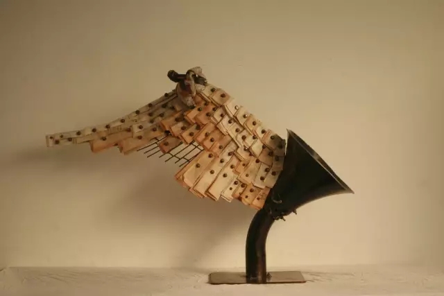 张弱-《插翅》-150×90×30cm-铸铜,旧书,旧喇叭-1_8-2016