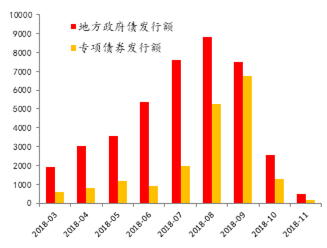 图1:2018年三季度地方政府债加速发行 月度:亿元 |