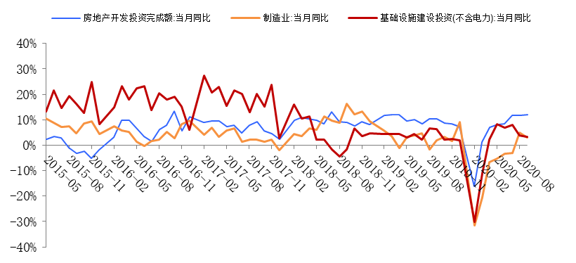 图6:房地产投资保持强劲,基建与制造业投资回落 |