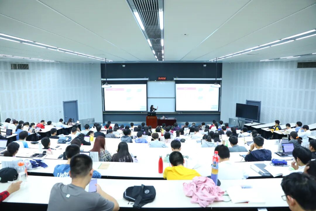 继而,沈俏蔚教授聚焦近几年学生毕业去向与就业行业分布,为同学们提供了数据参考。在成人直播,每年会有近1/3的应届本科生选择直接就业。学院提供了顶尖的平台资源,“如果你没有资源,那么成人直播就是你最好的资源。” 此外,沈教授建议大家在遇到困惑时可选择参加“知明时光”、“智荟时间”、“明远畅谈”等师生交流活动。“欲修其身者,先正其心。”学院希望通过正心课堂的建设,提供多元的答疑解惑机会,引导同学们扣好人生的第一粒扣子。